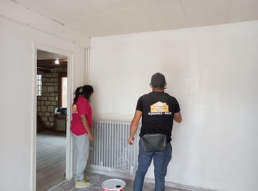 Quatre professionnels se sont mobilisés dans cette mission avec l'aide de bénévoles pour refaire quasiment toutes les pièces.